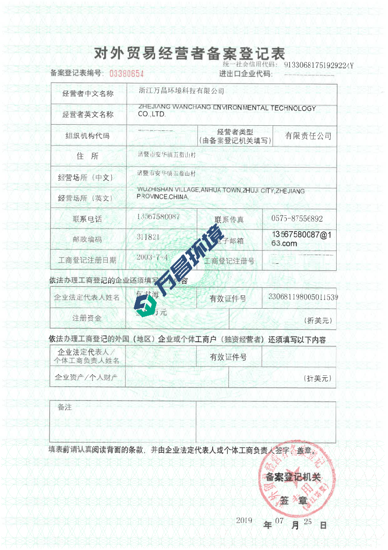 对外贸易登记表